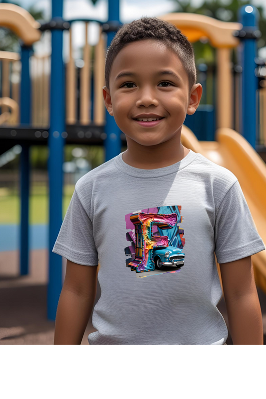 Alphabet Letter F – Boy Toddler T-Shirt | White Crewneck Short Sleeve